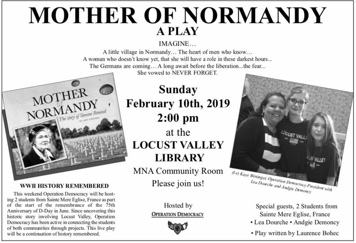 Citizens of Locust Valley popularized the concept of “sister cities” by adopting Sainte Mere Eglise, the first town liberated during the invasion of Normandy. Our hometown hero, Gen. Theodore Roosevelt, Jr, who led the charge in the first wave on Utah beach, was buried alongside 13,000 American soldiers in Sainte Mere Eglise. Within a year nearly 200 American cities had followed Locust Valley’s lead, adopting sister cities all over the world. (Creating Sister Cities International in 1956 by President Eisenhower.)The legacy continues today with hundreds of towns all over the world perpetuating this tradition of friendship.